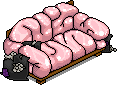 The Brain Sofa was released on 14 June 2023 in the Habbo NFT Shop in unlimited quantities. It is a user-generated LTD sofa created by Habbo user Jeca. Twenty percent of the NFT credits spent on this sofa were given to the creator.